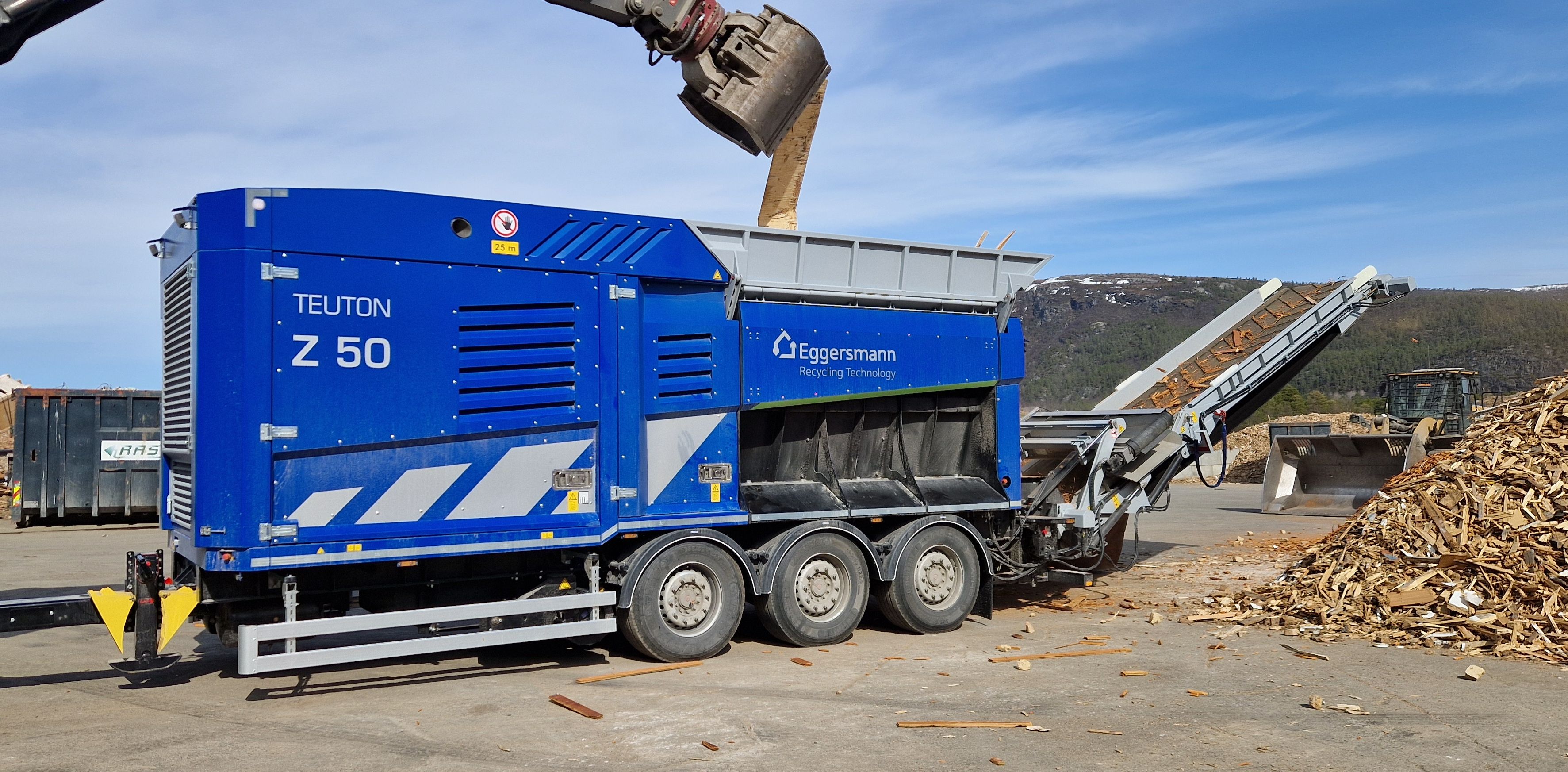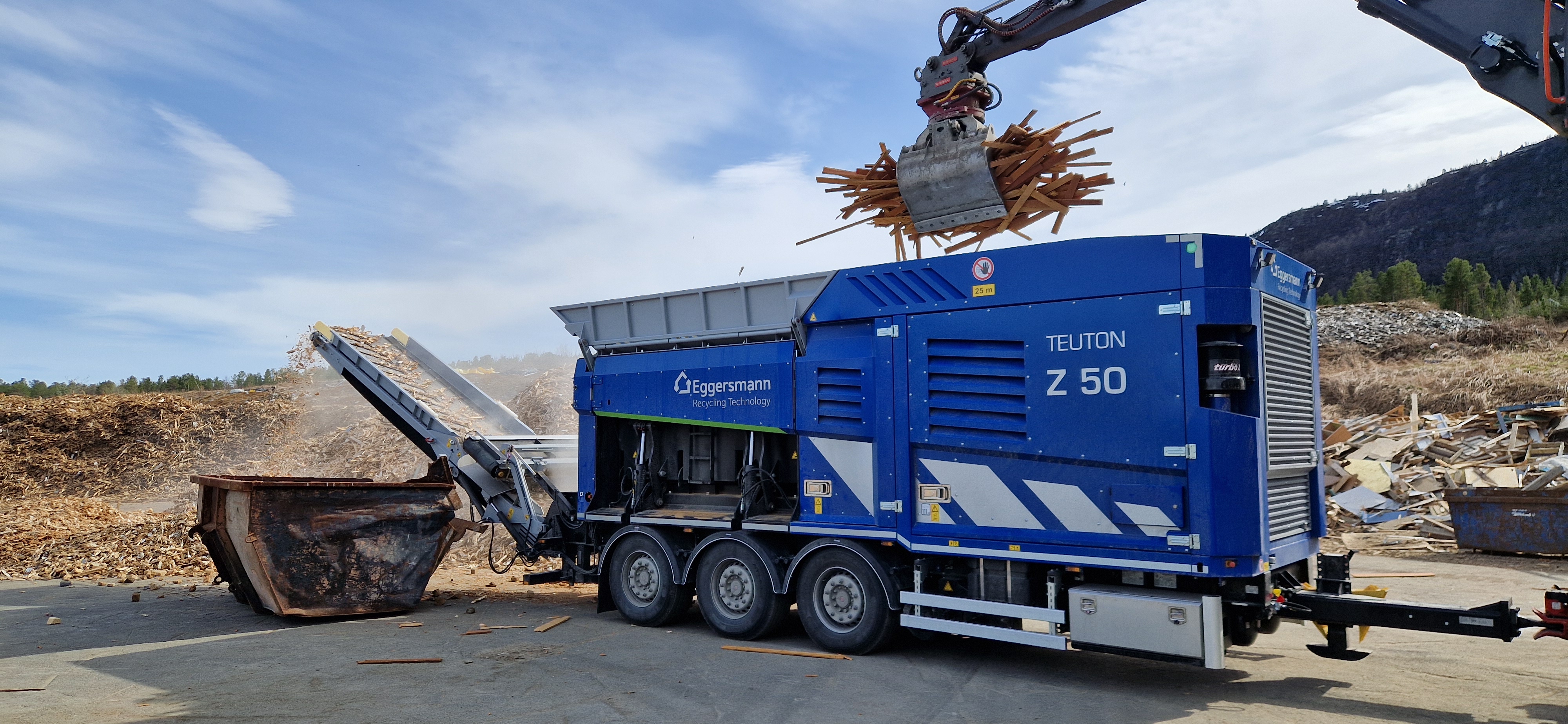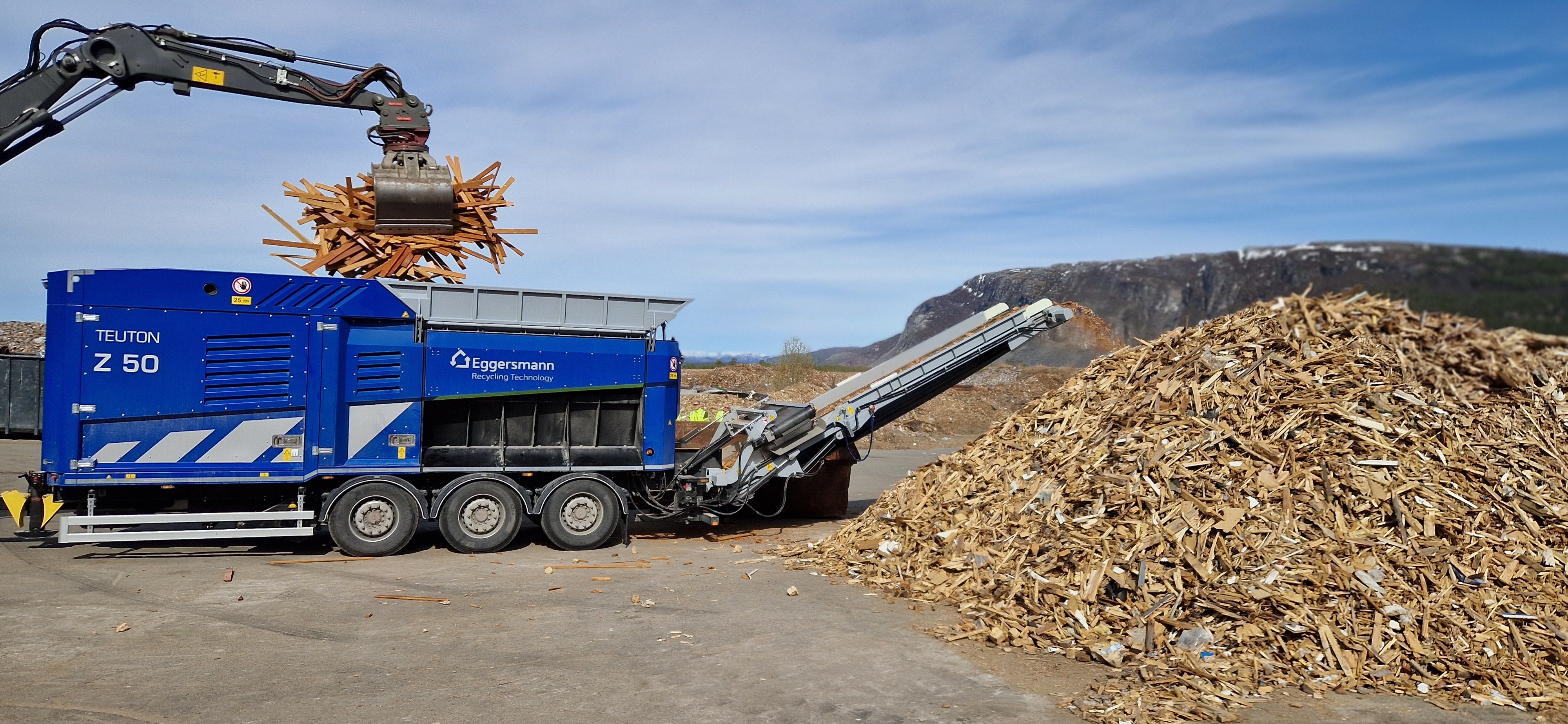 Vefas IKS har tatt i bruk den nye kvernen. Under ligger video fra kvernoverleveringen av Eggersmann Teuton Z50 kvern. Den brukes til å kverne gulv fra en gymsal og deretter diverse treverk.
